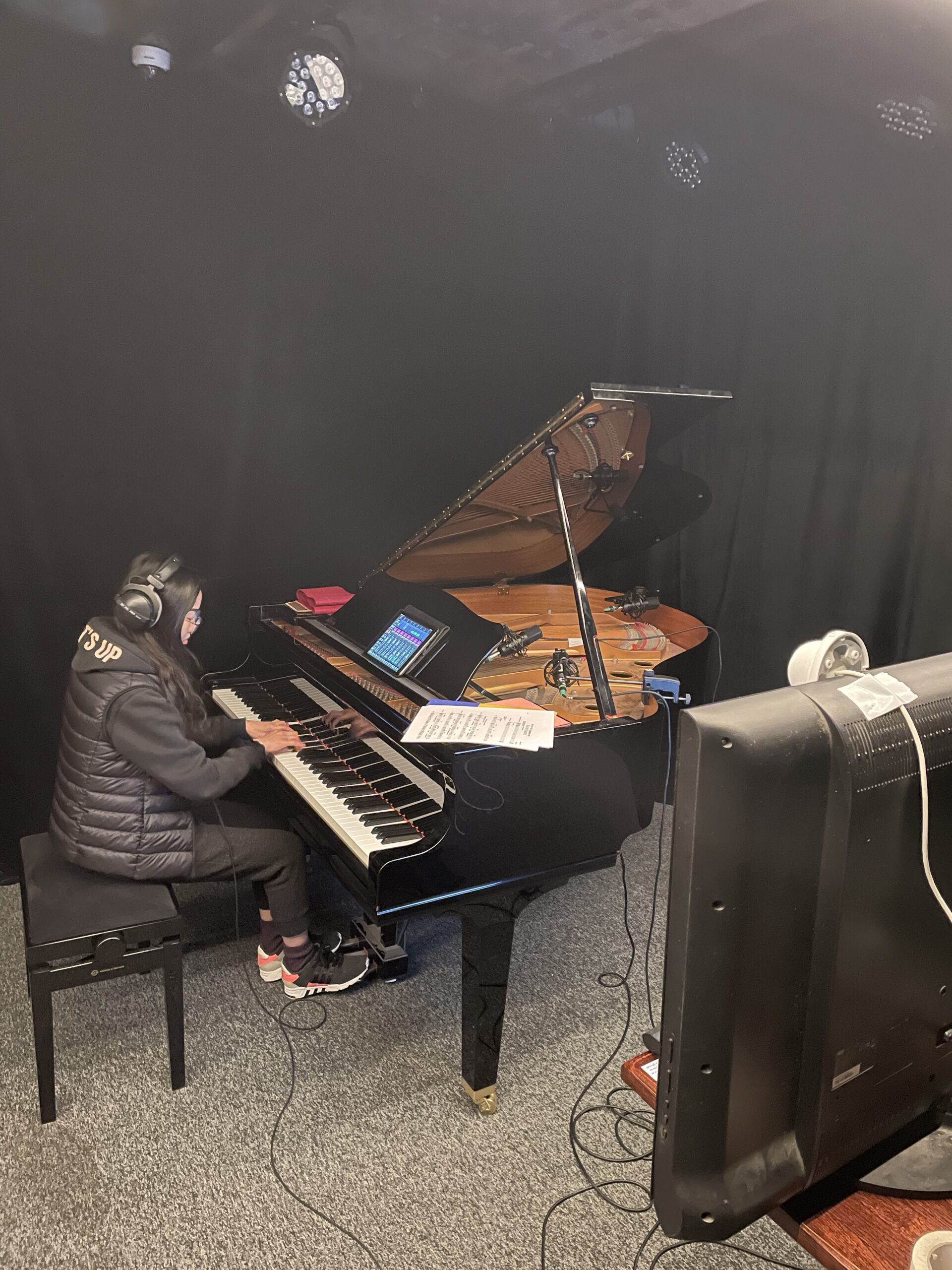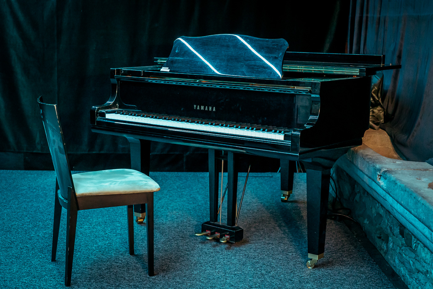 La scène peut servir de troisième espace d’enregistrement et est équipée d’un piano à queue Yamaha GC-1.