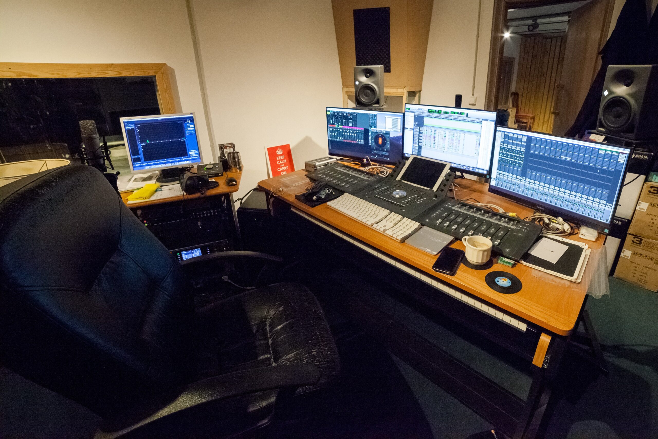 Le studio dispose de l’équipement software et hardware nécessaire pour écrire et générer de la musique, depuis la ligne de basse qui manquait pour souligner un morceau, jusqu’à la composition de toutes pièces d’une bande son de film.
